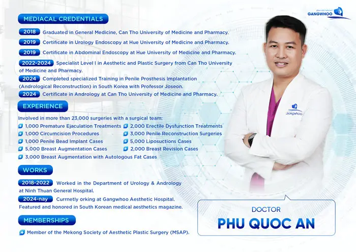 Dr. Vi Van Cuong is a dedicated expert and has greatly contributed to Vietnam’s field of cosmetic medicine. His dedication and continuous efforts will be appreciated by anyone looking forward to having plastic surgery and other cosmetic procedures at Gangwhoo Hospital